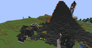 Volcanoes are a naturally generated part of the Tekkit world introduced by RedPower. They are made of Basalt; a material that can become Basalt Cobblestone when mined and can be crafted into Basalt Brick. RedPower volcanoes take the shape of either a rare composite volcano (tall and narrow) or a common shield volcano (short and flat). The middle of the volcano will contain a 1x1 shaft of lava surrounded by basalt that leads down to a large pool of lava near the bedrock level. Lava can also generate in random locations on the volcano, which may cause forest fires. Since lava is generated randomly there is a very high chance of there only being one visible lava source block. On the other hand it is possible that the entire volcano is covered in a sea of lava.